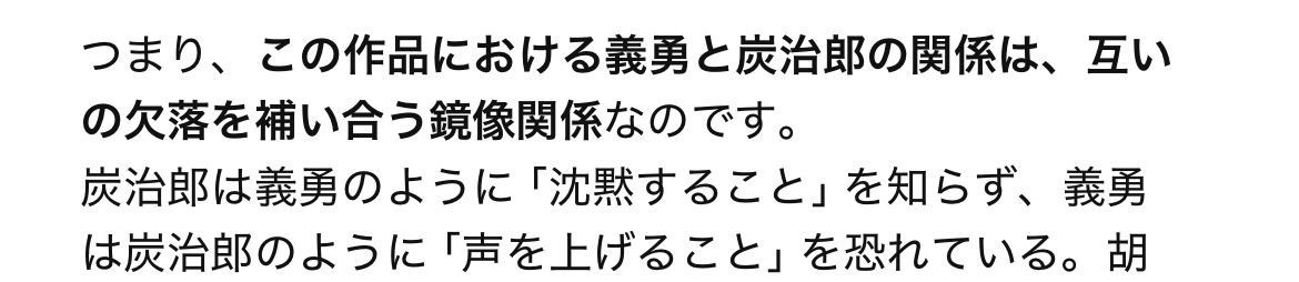 まだ無形の感情なので過度に言語化して残すつもりはないけれども、竈門炭治郎さんに対して、悪の全否定の根拠を知りたいと感じたのが発端だ。